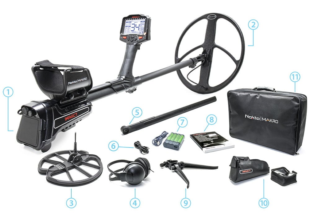 1. Sistem Kutusu 2. 39×45 Cm Su Geçirmez DD Arama Başlığı (IM45) ve Kapağı 3. 28 Cm Su Geçirmez DD Arama Başlığı (IM28R) ve Kapağı 4. Kulaklık 5. Ekstra Alt Boru 6. Data Kablosu 7. USB Şarj Cihazı ve 4 x AA Şarj Edilebilir Pil 8. Kullanım Kılavuzu 9. Stant 10. Koruyucu Kılıflar 11. Taşıma Çantası