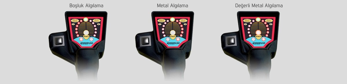 Jeosonar 3D Çift Sistem mükemmel bir 3D sisteme, derin arama sistemine ve çok pratik bir LED (Işıklı) sisteme sahiptir. LED sistemde Derin ve Genel Arama Anteni ile arama yapamadığınız alanlarda, duvar ve yamaç aramalarında tek para ve yüzeysel aramalarda hızlı ve etkili aramalar yapabileceksiniz. Metal ayırımlı olarak hazırlanan bu pratik dedektör arama ve araştırmalarınızda en pratik yardımcınız olacak. Elceğin üst kısmında yer alan LED panoda sol taraf boşluk sinyalleri, sağ tarafta metal sinyalleri yer alır. Işık ikaz sistemi dışında boşluk ve metal hedefler için iki farklı ses tonu ile kullanıcının her ortamda rahat algılama yapabilmesine olanak sağlar.Cihaz Dili: Türkçe