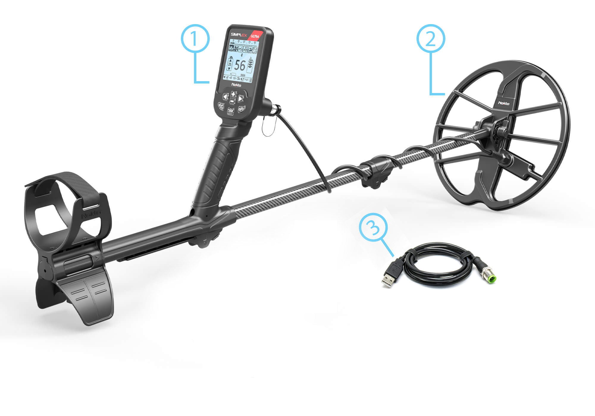 SIMPLEX'te hepsi var - Ekran Arka Aydınlatma, Tuş Takımı Arka Aydınlatma ve LED Fener Kolayca taşıma ve su altı kullanımı için 63 cm'e kadar küçülebilir arama kolu. Yorulmadan uzun saatler boyunca arama yapmanın keyfini yaşayın. Dedektörle birlikte gelen şarj aleti ile veya USB powerbank ile kolayca şarj edin. Dedektörünüzü her zaman güncel tutarak (PC üzerinden USB bağlantısı ile) en iyi performansı alın.